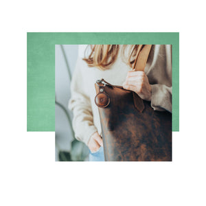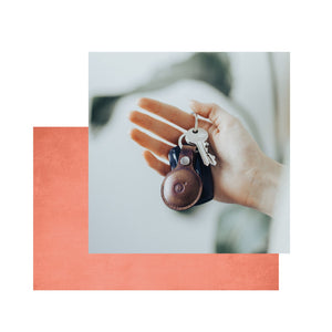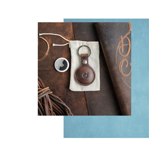 A handsome accessory for your keys, travel luggage, or pet's collar, our leather AirTag keyring is meticulously measured, constructed, and shaped to hold your tracker devices perfectly and securely, giving you greater protection and safety without compromising signal function or sound notifications.