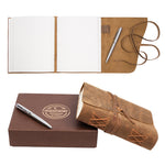 Features include a unique leatherbound cover and kraft paper sheets with lines in two sizes: 8x6 inches and 7x5 inches.