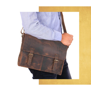 HANDCRAFTED LAPTOP LEATHER MESSENGER BAG MADE WITH GENUINE BUFFALO LEATHER